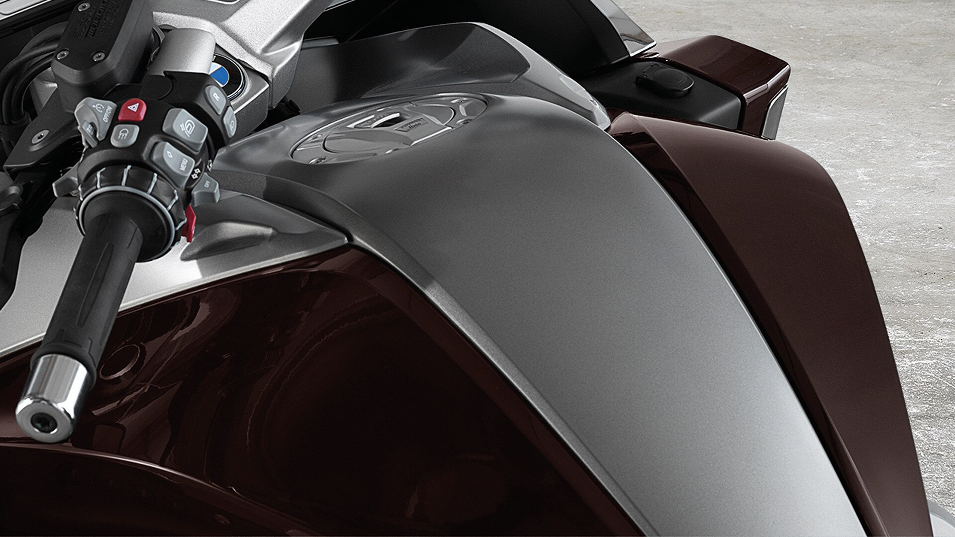 Assistant de marche arrière : manœuvrer la machine sans effort et sortir aisément des places de stationnement.Simplement faire marche arrière. Les routes escarpées et les places étroites sur des lieux très fréquentés ou les parkings ne posent aucun problème grâce à l'assistant de commande de couple (TCA). Il ne te reste plus qu'à sourire lorsque tu fais ta manœuvre pour te garer. L'assistant de marche-arrière se met en marche lorsque la moto est en neutre et que l'on active la fonction d'assistant à l'aide de la touche située sur le demi-guidon gauche. Dès qu'un R s'affiche sur l'écran et que l'on appuie dessus, la moto glisse facilement hors de sa place de stationnement et l'on peut poursuivre sa route à toute vitesse.
